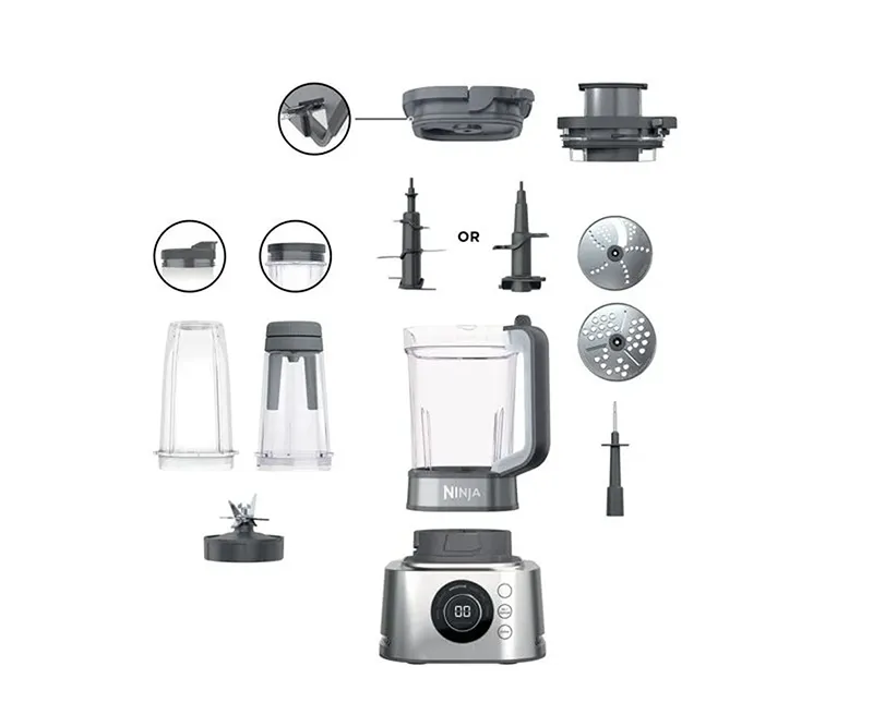 تیغهها و دیسکهای استیل ضدزنگ با طراحی متنوع شامل تیغه ۴ و ۶ پره، دیسک برش ورقهای و رنده ریز، امکان خرد کردن، برش دادن و حتی تهیه خمیر را فراهم میکنند. وجود پایه ضدلغزش و قفل ایمنی نیز کار با دستگاه را مطمئنتر کرده است. علاوه بر این، دو پارچ جانبی ۷۰۰ و ۵۳۰ میلیلیتری برای تهیه اسموتی، سسهای غلیظ و ترکیبات با بافت متراکم در نظر گرفته شده است.
