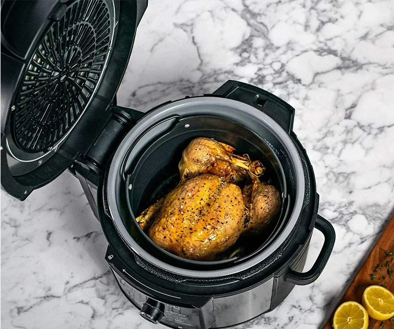 - دارای برنامههای Pressure Cook , Air Crisp , Slow Cook , Roast , Grill , Steam , Bake , Sear , Sauté , Dehydrate , yoghurt , Keep Warm / دارای قابلیت تنظیم برنامه به صورت دستی و دلخواه / ظرفیت ظرف سرخ کن ۴.۷ لیتر